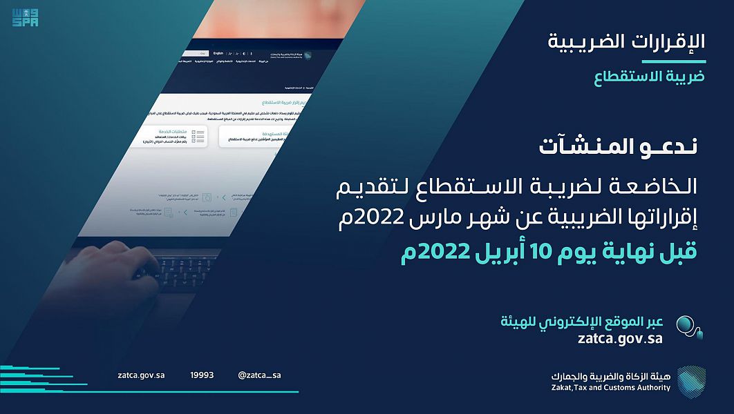 هيئة الزكاة تدعو المكلفين الخاضعين لضريبة الاستقطاع إلى تقديم إقراراتهم عن شهر مارس الماضي