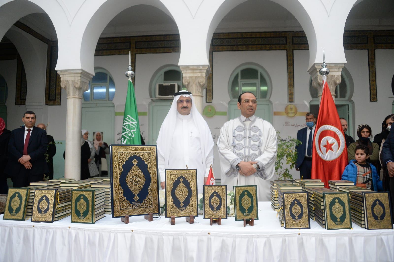 استقبل وزير الشؤون الدينية التونسي ابراهيم الشائبي ، بمقر الوزارة بالعاصمة تونس سفير خادم الحرمين الشريفين لدى تونس الدكتور عبد العزيز بن على الصقر الذي اشرف على تسليم 22 الف نسخة من المصحف الكريم هدية خادم الحرمين الشريفين الملك سلمان بن عبدالعزيز- يحفظه الله – من إصدرات مجمع الملك فهد لطباعة المصحف الشريف التي تشرف على توزيعها وزارة الشؤون الإسلامية والدعوة والإرشاد، بالتنسيق مع سفارات المملكة في دول العالم.