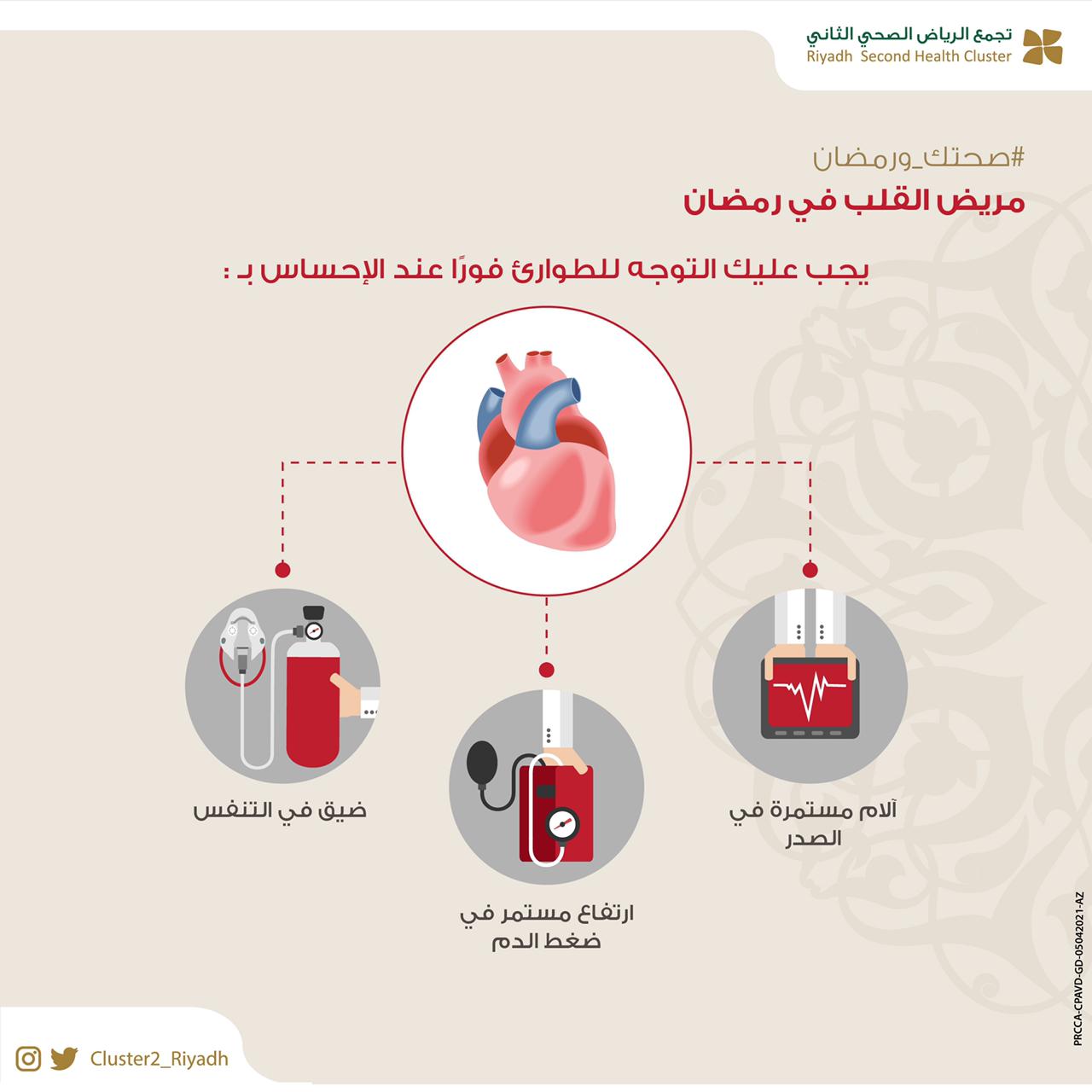 تجمع الرياض الصحي الثاني يوجه نصائح لمرضى القلب في رمضان
