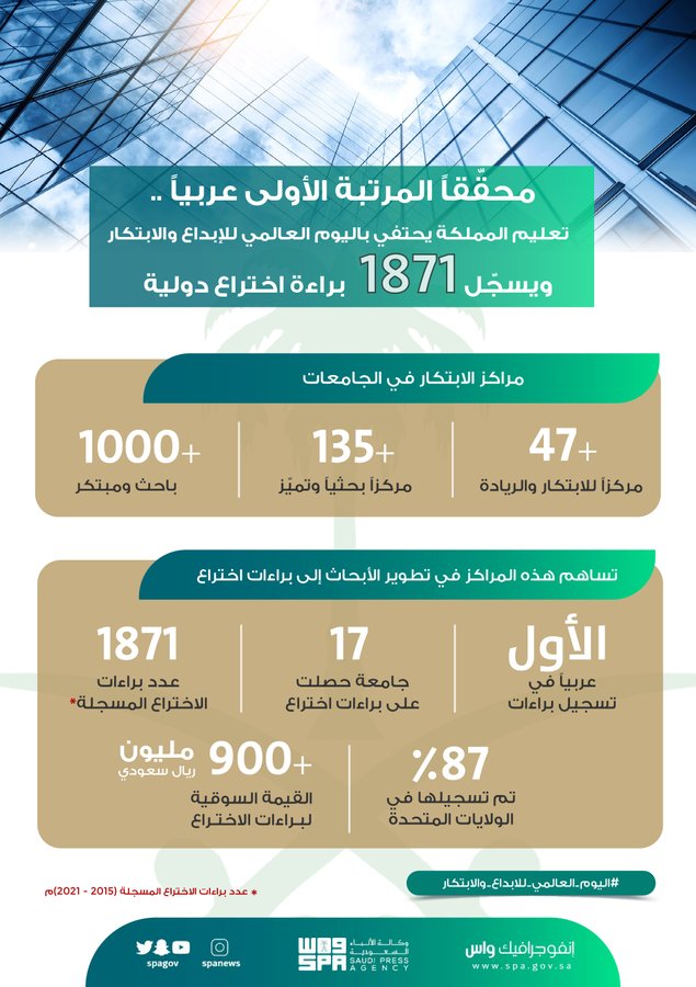 تعليم المملكة يحتفي باليوم العالمي للإبداع والابتكار ويسجّل 1871 براءة اختراع دولية محقّقاً المرتبة الأولى عربياً