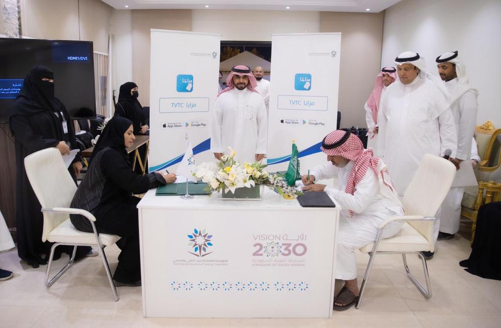 رعى معالي محافظ الموسسة العامة للتدريب التقني والمهني الدكتور أحمد بن فهد الفهيد إتفاقية توقيع (8) شراكات وطنية حصرية لبرنامج ⁧‫ مزايا تقني‬⁩ والذي يقدم عروض خدمية لكافة منسوبي المؤسسة والمتقاعدين وعوائلهم .