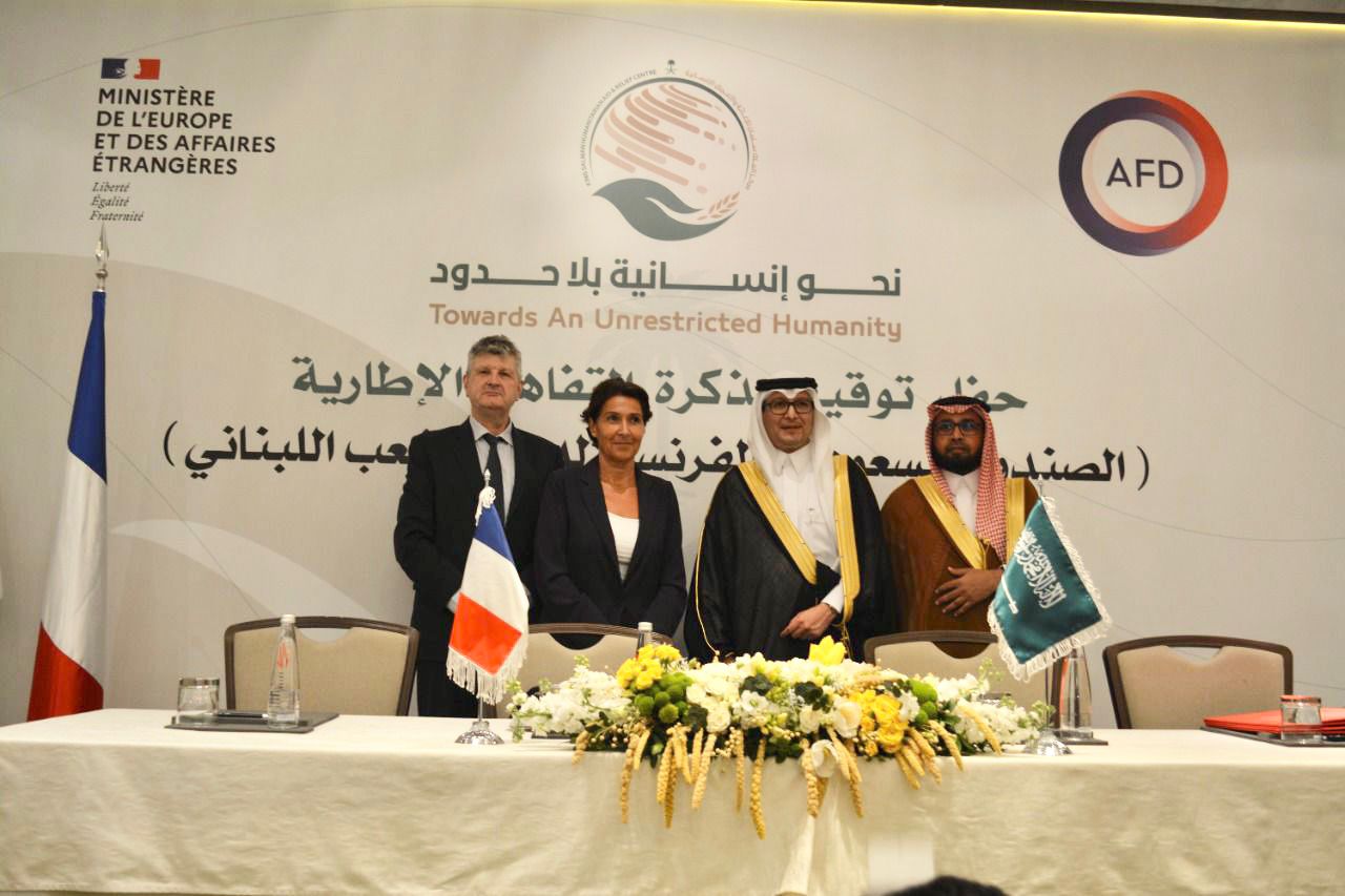 وقع مركز الملك سلمان للإغاثة والأعمال الإنسانية في العاصمة اللبنانية بيروت اليوم مذكرة تفاهم مع وزارة الخارجية الفرنسية، والوكالة الفرنسية للتنمية ( AFD ) ، بهدف دعم العمل الإنساني في لبنان ، في إطار الشراكة السعودية الفرنسية .