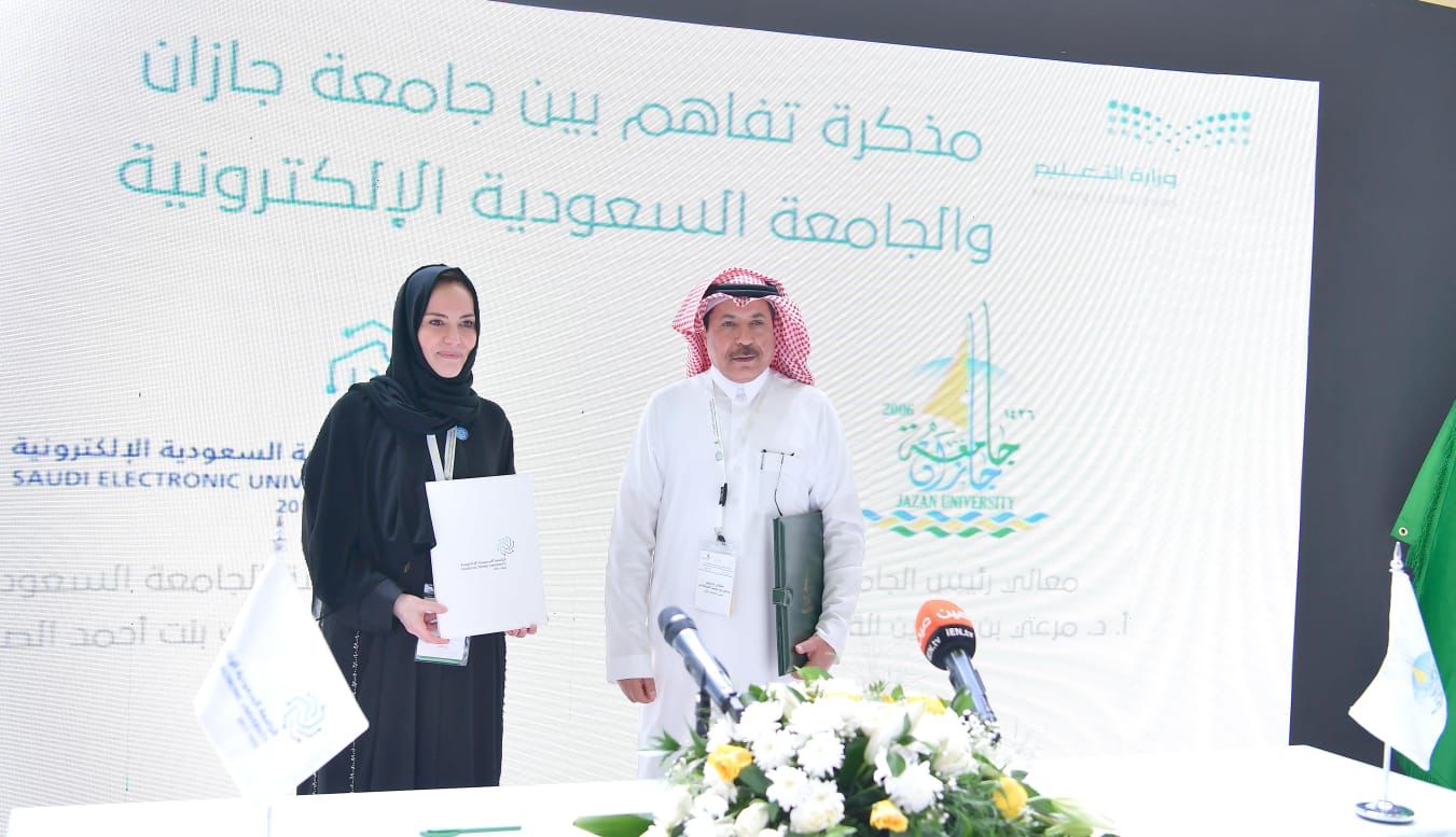 وقع معالي رئيس جامعة جازان الأستاذ الدكتور مرعي بن حسين القحطاني ورئيسة الجامعة السعودية الإلكترونية الأستاذة الدكتورة ليلك بنت أحمد الصفدي اتفاقية تعاون ضمن برنامج الجامعة في المؤتمر والمعرض الدولي للتعليم، كما شهد معاليه مراسم توقيع اتفاقية تعاون مماثلة مع كلية العناية الطبية.