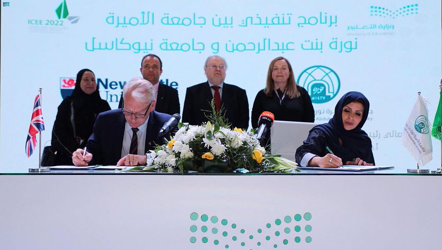 أبرمت جامعة الأميرة نورة بنت عبدالرحمن 11 مذكرة تعاون وتفاهم وبرامج تنفيذية مع عدد من الجامعات والمؤسسات المحلية والعالمية، في المؤتمر والمعرض الدولي للتعليم المقام بمركز الرياض الدولي للمؤتمرات والمعارض, حيث وقعت معالي رئيسة الجامعة الدكتورة إيناس بنت سليمان العيسى مذكرات لبرامج تنفيذية مع “جامعة دندي”، و”جامعة غلاسكو”، و “جامعة إكسيتر”، و”جامعة ستر إثكلايد”، و”جامعة نيوكاسل”، إضافةً إلى توقيع عقد خدمات مع “جامعة سوانزي” لتقديم برنامج ماجستير العلوم في الطاقة والابتكار.