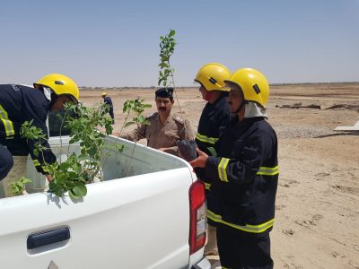 حيث زجت مديرية الدفاع المدني بكوادرها في جميع أنحاء العراق وسخرت آلياتها الحوضية من أجل إتمام أعمال الإرواء ورعاية الأشجار بشكل مستمر ضمن خطة أعدتها المديرية بانتخاب مناطق زراعة الشتلات تراعي فيها اتجاه حركة رياح العواصف المتربة من أجل تقليل تأثيرها على المواطنين.