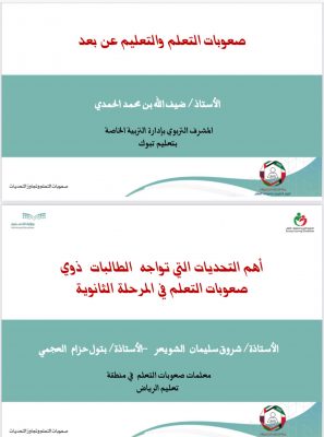 تناولت الندوة 4 محاور علمية حيث تحدث الدكتور سعد الحواس من تعليم مكة المكرمة… العلاقة التكاملية بين المدرسة والأسرة مؤكدًاضرورة تضافر الجهود لنتائج أفضل وهي مفتاح نجاح الطالب. كما عرض الأستاذ ناصر العقيل مدير إدارة التربية الخاصة بتعليم القصيم عن آليات اكتشاف الطلاب ذوي صعوبات التعلم مبيناً أنها عملية دقيقة تتطلب التعمق في الخصائص والمؤشرات لتقديم الخدمات بشكل مناسب، ومن جهته تحدث الأستاذ ضيف الله الحمدي مشرف صعوبات تعلم بتعليم تبوك عن (صعوبات التعلم والتعليم عن بعد) مؤكداً أن التعليم- عن بُعد- أصبح خيارًا إستراتيجياً للمستقبل ويتطلب استمرار تطويره،. وفي ختام أوراق العمل تحدثت كل من معلمات صعوبات التعلم الأستاذة شروق الشويعر- الأستاذة. بتول العجمي من تعليم الرياض عن أهم التحديات التي تواجه طالبات صعوبات التعلم في المرحلة الثانوية ،وقد أوصت في ختامها على ضرورة تدريب طلاب صعوبات التعلم على التعلم الذاتي المستقل لمواجهة الحياة والعمل. والعمل على عقد الشراكة المجتمعية لتأهيل وتدريب الطلاب مهنياً. وضرورة المام المعلم والأسرة بالمراحل النمائية للطفل وخصائص كل مرحلة وكيفية التعامل معها، وعلى المعلم التعامل النفسي الأمثل مع الطالب قبل البدء في الخطة التربوية الفردية لكسر الحاجز النفسي بين المعلم والطالب لتحفيز الطالب للبرنامج وزيادة فاعلية التعليم داخل غرفة المصادر. وعلى الأسرة التعامل النفسي مع الأبن الطالب عند وجود مشاكل دراسية لديه وعدم مقارنته بأقرانه ودعمه نفسياً ومعنوياً وتحفيزه للعميلة التعليمية في المدرسة والمنزل وتهيئة الأسرة بالتوعية والتدريب على التعليم عن بعد.