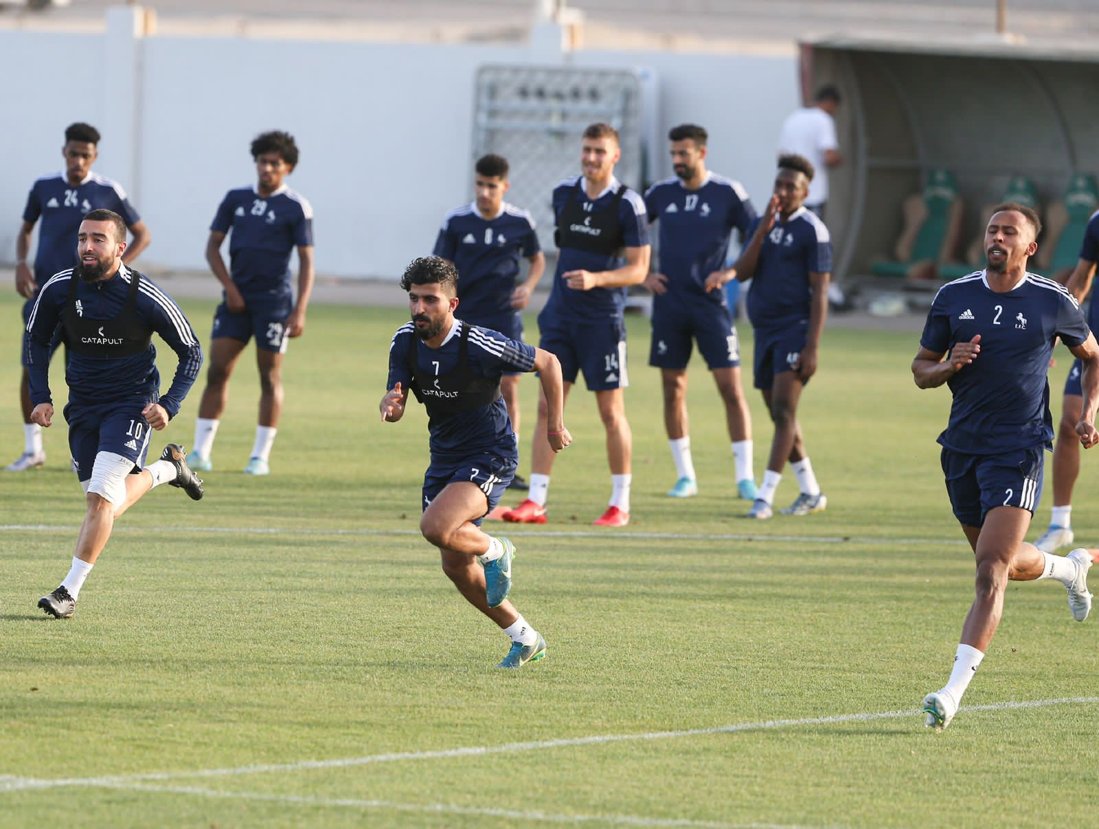 وكان التدريب الذي قاده المدرب الفرنسي باتريس كارتيرون قد اشتمل بعد الإحماء على تمارين لياقية خفيفة من خلال السرعات ، ثم تدريب المربعات عبر مجموعتين ، بعد ذلك طبق اللاعبين الجانب التكتيكي الذي سينتهجه كارتيرون لمواجهة الحزم ، قبل أن ينهي المران بمناورة تكتيكية على جزء من الملعب.