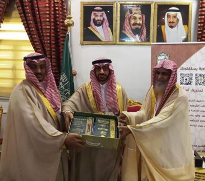 استقبل سعادة الاستاذ محمد الشمراني محافظ محافظة ابو عريش بمقر المحافظة صباح اليوم الأحد ٢١/ ١٠/ ١٤٤٣ فضيلة مفوض الإفتاء بمنطقة جازان فضيلة الشيخ محمد شامي شيبة و مدير عام فرع الرئاسة العامة للبحوث العلمية والإفتاء سعادة الاستاذ عبدالله علي حمدي بحضور رؤساء المراكز ومدراء الجهات الحكومية ومشايخ وعرائف وأعيان المحافظة.