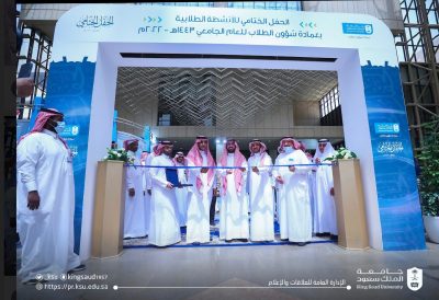 برعاية معالي رئيس الجامعة الاستاذ الدكتور بدران بن عبدالرحمن العمر افتتح سعادة وكيل الجامعة الأستاذ الدكتور عبدالله بن سلمان السلمان وبحضور سعادة وكيل الجامعة للشؤون التعليمية والأكاديمية الاستاذ الدكتور محمد بن صالح النمي حفل ختام الأنشطة الطلابية لعام ١٤٤٣ والذي نظمته عمادة شؤون الطلاب بقاعة الشيخ حمد الجاسر ظهر اليوم الاحد ٢١ شوال من عام ١٤٤٣هـ الموافق٢٢ مايو ٢٠٢٢م ، حضر الحفل وكلاء الجامعة وعمداء الكليات والعمادات المساندة ووكيلات الكليات ورؤساء الأقسام .
