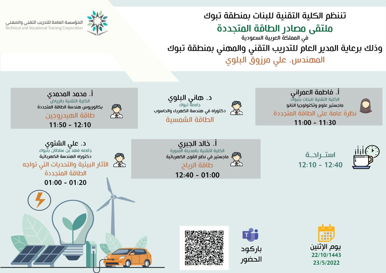 أخبار محلية > إنطلاق أعمال ملتقى ” مصادر الطاقة المتجددة ” بالكلية التقنية للبنات بتبوك