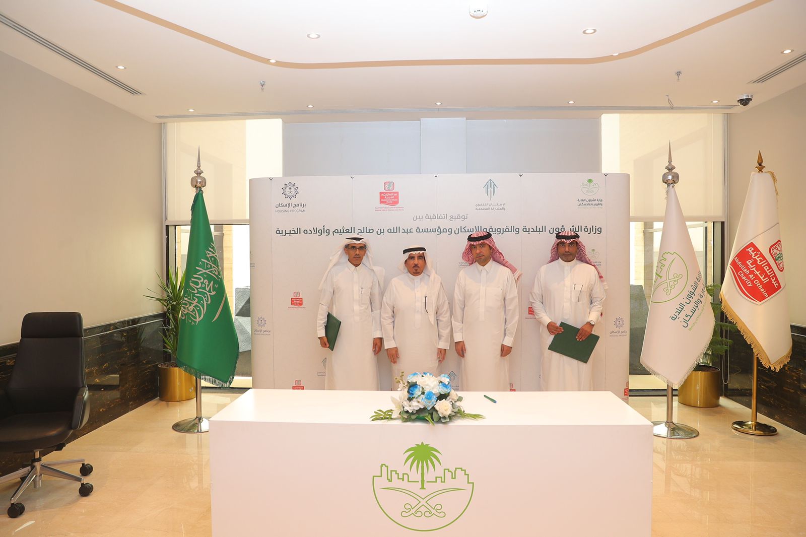 ووقع الاتفاقية وكيل وزارة الشؤون البلدية والقروية والإسكان للإسكان التنموي والمشاركة المجتمعية المهندس أحمد بن علي القرعاوي، والمشرف العام على مؤسسة عبدالله صالح العثيم وأولاده الخيرية الدكتور أحمد بن عبدالله الكبيّر.