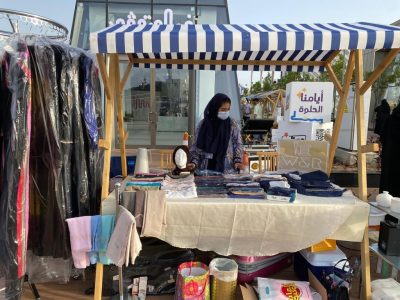 وبينما تتعدد في “سوق السبت” المنتجات تعدد فيه أيضاً الشراكات، فمن شراكة الأصدقاء للشراكات العائلية، حيث وجدت عائلة باجابر المكونة من “ديما وعائشة ولين” الفتيات اللاتي يروجن لمنتجات عمتهن “رانية باجابر”، فرصة للتواجد مع الجمهور وعرض العبايات والطرح والشيلات المحبوكة يدوياً والتي تجد إقبالاً ورواجاً من الزوار .