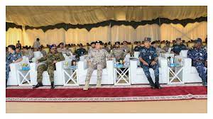عقب ذلك توجَّهَ معاليه ومرافقوه إلى المنصة الرئيسية،حيث شاهد عرضاً جوياً للطائرات الجوية المشاركة، وعرضاً لزوارق الاقتحام وزوارق المهام الخاصة وزوارق الاعتراض السريعة، ثم قامت قوات المهام الخاصة البحرية بتنفيذ مهام تطهير الجزيرة بمساندة طيران القوات البرية والزوارق البحرية،عقب ذلك قامت القوات المشاركة في التمرين بالاستعراض من أمام المنصة.