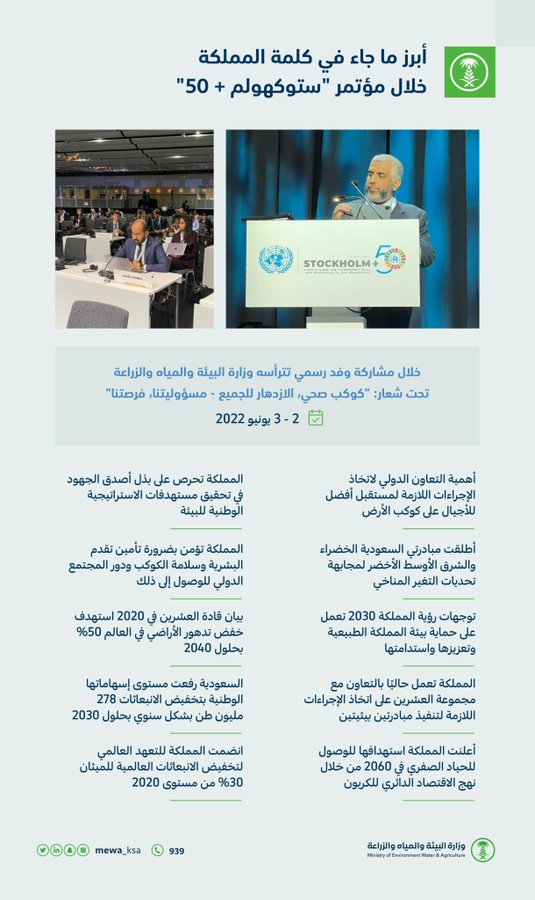 المملكة تستعرض جهودها المحلية والعالمية لحماية البيئة والمحافظة عليها في مؤتمر “ستوكهولم + 50″ر