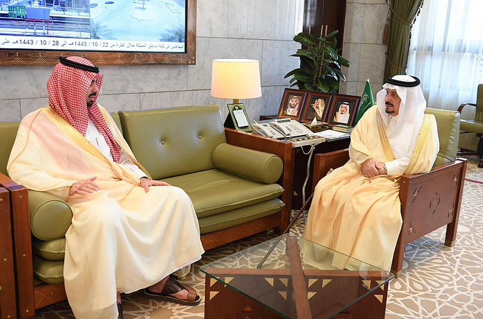 استقبل صاحب السمو الملكي الأمير فيصل بن بندر بن عبدالعزيز أمير منطقة الرياض في مكتبه بقصر الحكم، اليوم، صاحب السمو الأمير فيصل بن عبدالعزيز بن عيّاف أمين المنطقة يرافقه عاصم بن محمد السحيباني بمناسبة تعيينه رئيساً تنفيذياً لشركة الرياض القابضة.