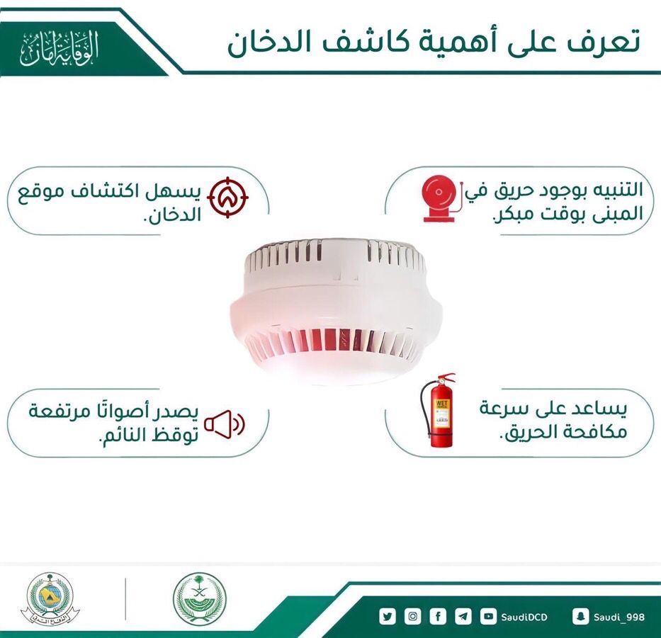 دائما ما يؤكد الدفاع المدني على أهمية وجود كاشف الدخان في المنزل لحماية الارواح والممتلكات في المباني السكنية والتجارية .