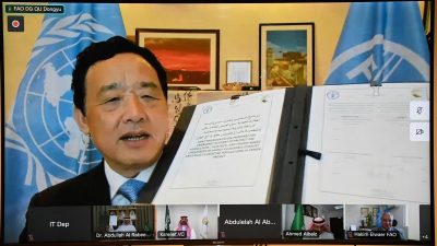 وقع الاتفاقية معالي المستشار بالديوان الملكي المشرف العام على المركز الدكتور عبد الله بن عبد العزيز الربيعة، ومن الجانب الآخر المدير العام لمنظمة الفاو السيد شو دنيو.