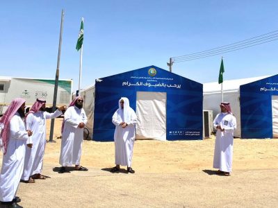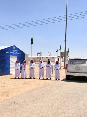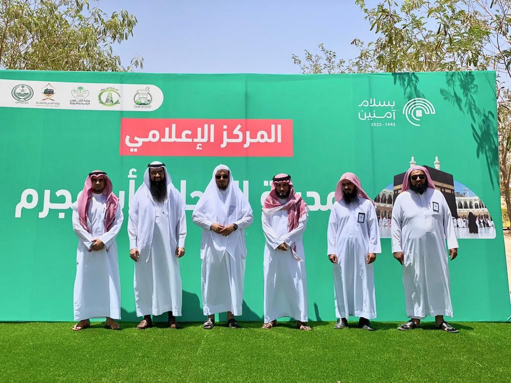 تفقد مدير عام فرع الرئاسة العامة لهيئة الأمر بالمعروف والنهي عن المنكر بمنطقة الجوف الدكتور علي بن ذويب العنزي يرافقة أعضاء اللجنه الفرعية لحج عام ١٤٤٣ هـ المركز الميداني التوعوي المتنقل في مدينة الحجاج بمركز أبو عجرم .