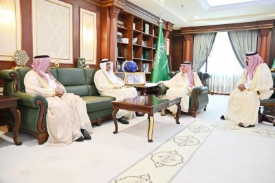 استقبل صاحب السمو الملكي الأمير محمد بن ناصر بن عبدالعزيز أمير منطقة جازان بحضور صاحب السمو الملكي الأمير محمد بن عبدالعزيز بن محمد بن عبدالعزيز نائب أمير المنطقة بالإمارة اليوم, معالي رئيس الهيئة الملكية للجبيل وينبع خالد بن محمد السالم, وذلك بمناسبة تعيينه رئيساً للهيئة بمرتبة وزير.