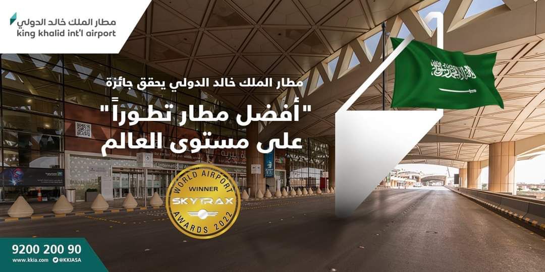 حقق مطار الملك خالد الدولي، جائزة أفضل مطار تطورًا لعام 2022، والذي يأتي على هامش مؤتمر Passenger Terminal Expo في باريس، خلال حفل توزيع جوائز سكاي تراكس العالمية، والتي تختص بتقييم شركات الطيران والمطارات بين أكثر من 550 مطارًا حول العالم.