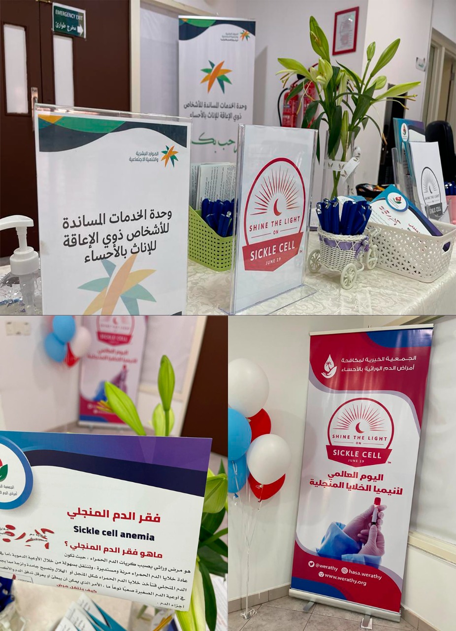 فعلت وحدة الخدمات المساندة للأشخاص ذوي الإعاقة للإناث بالأحساء اليوم العالمي لأنيميا الخلايا المنجلية لعام ٢٠٢٢ بالتعاون مع الجمعية الخيرية لمكافحة أمراض الدم الوراثية بالأحساء