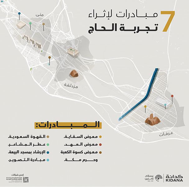 أطلقت الهيئة الملكية لمدينة مكة المكرمة والمشاعر المقدسة ممثلة في شركة كدانة مجموعة من المعارض المتخصصة والمبادرات الإثرائية في المشاعر المقدسة خلال موسم حج هذا العام 1443 هـ , بهدف إثراء تجربة الحجاج منذ وصولهم إلى الديار المقدسة وحتى مغادرتهم ولتخليد هذه الرحلة الإيمانية في ذاكرة الحجاج .