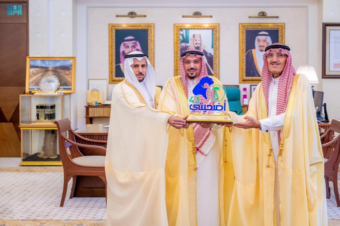 جاء ذلك خلال استقبال سموه بمكتبه اليوم، المشرف العام على فرع وزارة البيئة والمياه والزراعة بمنطقة القصيم المهندس سلمان الصوينع، ومدير فرع وزارة البيئة والمياه والزراعة بالقصيم المهندس عبدالعزيز الرجيعي، وفريق عمل المهرجان.