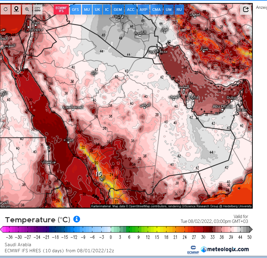 وأضاف، أجواءٌ حارة نهاراً، وهي أقل من المعدل السنوي في مثل هذه الأيام على المملكة.