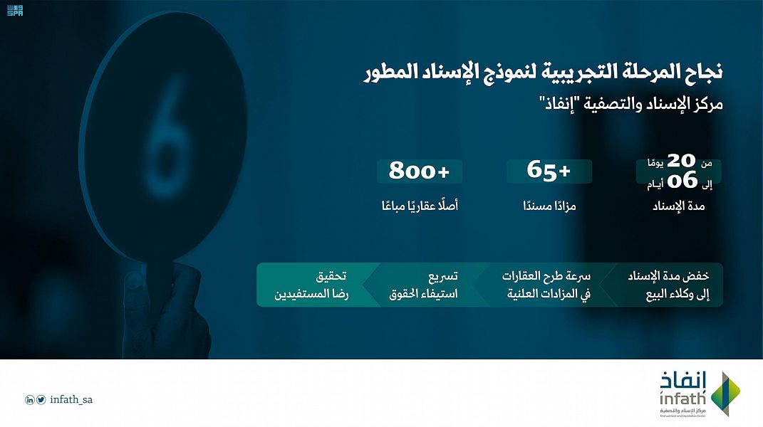 أعلن مركز الإسناد والتصفية “إنفاذ” عن نجاح المرحلة التجريبية لنموذج الإسناد المطور من خلال طرح تجريبي لأكثر من 65 مزاداً تشمل أكثر من 800 أصل عقاري، وسيعمل المركز على التوسع في تطبيق النموذج المطور ليشمل كامل أعمال البيع والتصفية، بهدف خفض مدة التعاقد مع وكلاء البيع والمقيمين المعتمدين وسرعة طرح العقارات في المزادات العامة بما يساهم في سرعة استيفاء المستفيدين لحقوقهم، وذلك من خلال آلية مؤتمتة لتقسيم الأصول بحسب أحجامها وأعمال التسويق المطلوبة لها، ثم إسنادها بشكل آلي ومحوكم إلى وكلاء البيع المصنفين بحسب خبراتهم ومستوى رضا المستفيدين عن أعمالهم السابقة.