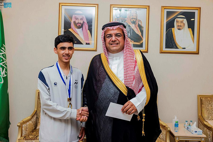 استقبل صاحب السمو الأمير منصور بن محمد بن سعد محافظ حفر الباطن أمس طلاب جمعية رعاية الأيتام بمحافظة حفر الباطن “تراؤف” الحاصلين على المركز الأول والراية الذهبية في منافسات الأولمبياد الوطني لأيتام المملكة للمرة الثالثة على التوالي، الذي نظمته جمعية “آباء” لرعاية الأيتام بمنطقة عسير، بمشاركة جمعيات الأيتام من مختلف مناطق المملكة.