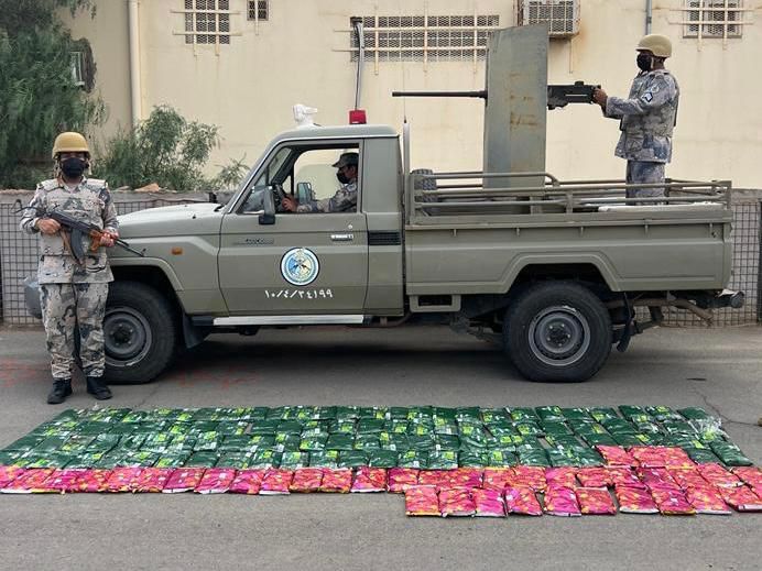 قبضت الدوريات البرية لحرس الحدود في قطاع ظهران الجنوب بمنطقة عسير على (6) مخالفين لنظام أمن الحدود من الجنسية الإثيوبية، بحوزتهم (140) كيلوجرامًا من مادة الحشيش المخدر، وجرى استكمال الإجراءات النظامية الأولية بحقهم، وتسليمهم والمضبوطات لجهة الاختصاص.