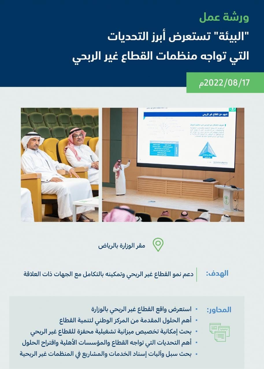 من جهته، قدّم مدير الإدارة العامة لمنظمات القطاع غير الربحي بالوزارة الدكتور خالد المجلاد؛ عرضًا مرئيًّا عن واقع وآفاق القطاع غير الربحي بوزارة البيئة والمياه والزراعة؛ تناول من خلاله سبل وآليات إسناد الخدمات والمشاريع في المنظمات غير الربحية، كما استعرض أهم بنود ومقترحات العرض المقدم من المركز الوطني لتنمية القطاع غير الربحي، وبحث إمكانيات تخصيص ميزانيات تشغيلية محفّزة للقطاع، بالإضافة إلى مناقشة أهم التحديات التي تواجه منظمات القطاع والمؤسسات الأهلية، ومناقشة الحلول المناسبة لمعالجة التحديات، المتمثلة في زيادة الدعم المادي وتسهيل الإجراءات؛ لرفع معايير الحوكمة ومساعدة الجمعيات في تحقيق الاستدامة المالية، وإيجاد آلية لإسناد الخدمات والمشاريع الحكومية للمؤسسات الأهلية.