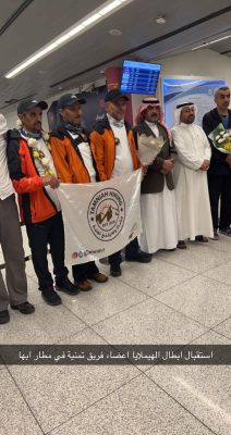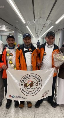 وصل اعضاء فريق مشاة وهايكنج تمنية مساء الاحد ١٤٤٤/١/١٦ الى مطار ابها المشاركين في الصعود الى قاعدة افريست البيس كامب في جبال الهيملايا في النيبال وهم الكابتن / سعيد الخريص والكابتن / ابراهيم طارش والكابتن / محمد شوعان بعد ان انهو مشاركتهم بنجاح وكان في استقبالهم. اعضاء الفريق ووسائل الاعلام وجمع من الاهالي بالورود نبارك لهم ولاعضاء الفريق هذا الانجاز الدولي