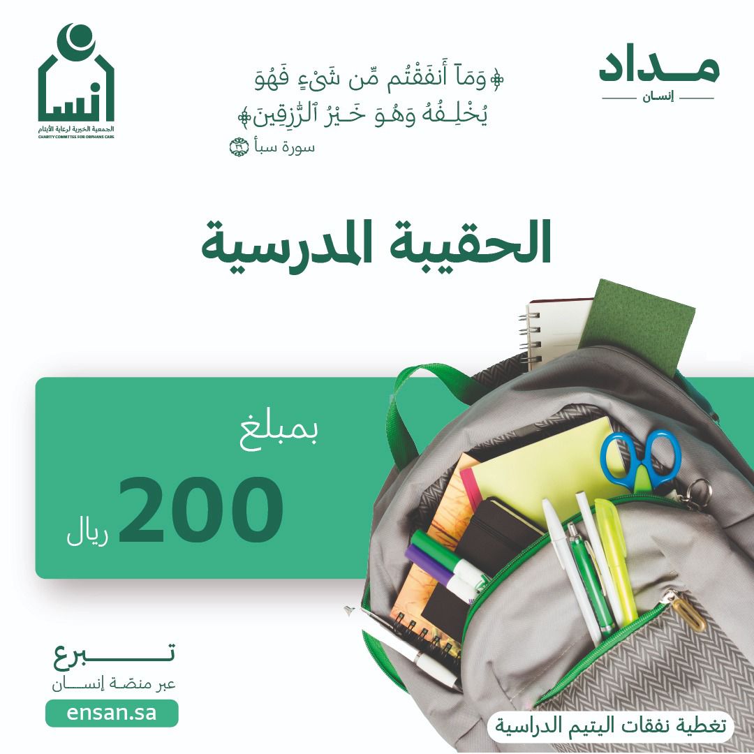 وحث المحارب المحسنين بالمساهمة في مشروع الحقيبة المدرسية للأيتام، من خلال زيارة أحد فروع الجمعية، أو إيداع المبلغ المخصص في حسابات الجمعية الرسمية ، أو التبرع عبر منصة إنسان عن طريق الرابط .