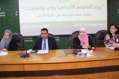 نظم قسم الترجمة في كلية الآداب بجامعة اليرموك فعاليات “يوم المترجم الأردني: رؤى وإنجازات”، حيث أكدت مساعد عميد الكلية للشؤون الطلابية الدكتورة نانسي الدغمي خلال رعايتها لفعاليات اليوم على أهمية الترجمة في عصرنا الحاضر للتواصل بين الشعوب ونقل العلوم والمعارف المختلفة فيما بينهم، مشيدة بجهود القائمين على قسم الترجمة الذين لم يألوا جهدا في تقديم عصارة علمهم وخبراتهم لطلبة القسم وذلك لتخريج جيل من الشباب الأردني الكفؤ القادر على الانخراط في سوق عمل الترجمة بجدارة واقتدار.