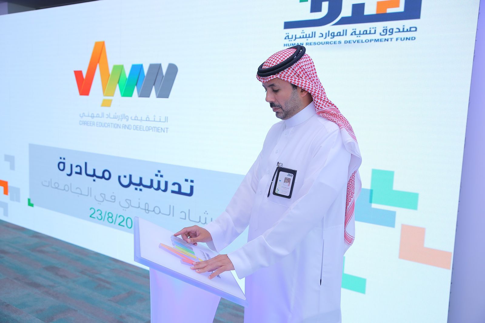 دشن سعادة مدير عام صندوق تنمية الموارد البشرية (هدف) الأستاذ تركي بن عبدالله الجعويني في مقر الصندوق بالرياض اليوم (الثلاثاء) مبادرة الإرشاد المهني في الجامعات من خلال إنشاء مكاتب للإرشاد في 13 جامعة حكومية وأهلية، وذلك بحضور عدد من ممثلي الجامعات وقيادات ومنسوبي الصندوق.