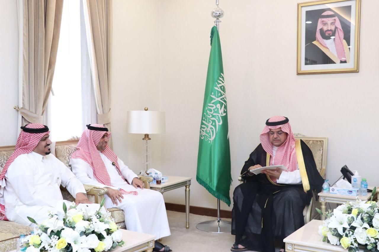 استقبل صاحب السمو الأمير منصور بن محمد بن سعد محافظ حفر الباطن ، مدير فرع وزارة التجارة بالمحافظة حاتم بن معيذف العنزي.