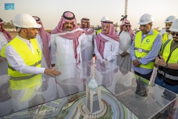وتجوَّل سموُّ الأمير عبدالعزيز بن سعد على مرافق المشروع واطلع على مبنى البرج وعلى الأعمال المنفذة والآليات المستخدمة في إنشاء البرج، حاثًّا على مضاعفة الجهود وتسريع وتيرة الإنجاز لكل مرحلة بجودة واتقان.