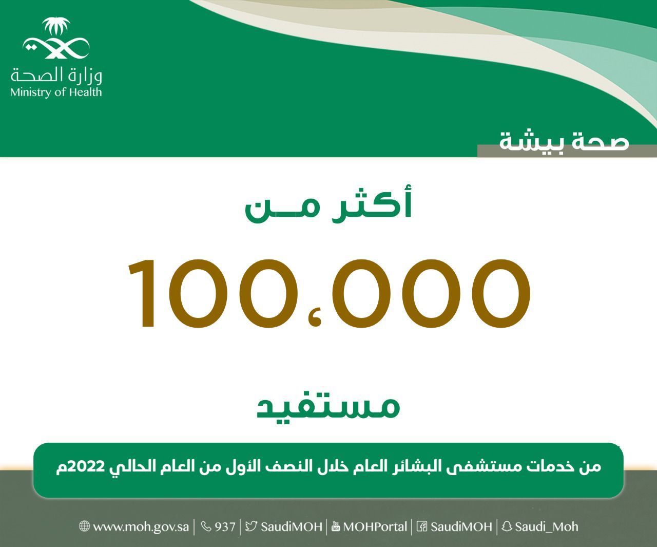 قدم مستشفى البشائر العام خدماته العلاجية والوقائية ل 104247 مستفيد، في مختلف أقسام المستشفى، وذلك خلال النصف الأول لعام 2022م.