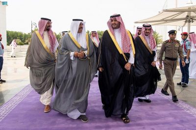وكان في استقباله بمطار الملك عبدالعزيز الدولي ، صاحب السمو الملكي الأمير تركي بن محمد بن فهد وزير الدولة عضو مجلس الوزراء الوزير المرافق ، وصاحب السمو الملكي الأمير بدر بن سلطان بن عبدالعزيز نائب أمير منطقة مكة المكرمة ، وصاحب السمو الأمير سلطان بن سعد بن خالد سفير خادم الحرمين الشريفين لدى دولة الكويت ، ونائب أمين محافظة جدة علي محمد القرني ، ومدير شرطة منطقة مكة المكرمة اللواء صالح الجابري ، ومدير مكتب المراسم الملكية بمنطقة مكة المكرمة أحمد عبدالله بن ظافر .