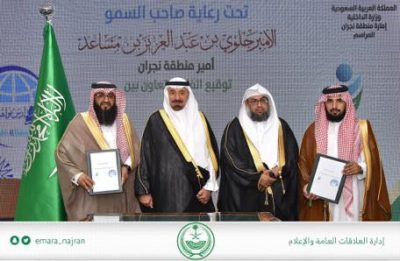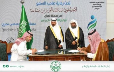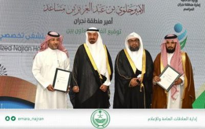 جاء ذلك خلال رعاية سموه اليوم في الإمارة ، توقيع الشراكة المجتمعية بين جمعية رعاية الأيتام بمنطقة نجران، مثلها المدير التنفيذي للجمعية سعيد بن ظافر آل هادي مع مستشفى تخصصي نجران ويمثله مدير المستشفى أحمد بن محسن آل رشه ومدارس مواهب الخليج بالمنطقة، ويمثلها صالح بن مسفر الوادعي.