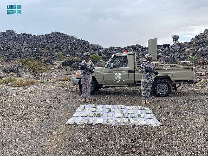 صرّح المتحدث الرسمي للمديرية العامة لحرس الحدود، العقيد مسفر القريني، بأن الدوريات البرية لحرس الحدود في مناطق نجران وجازان وعسير وتبوك، أحبطت محاولات تهريب (48) طنًا و(613) كيلو جرامًا من مادة القات المخدر، وطن و(519.3) كيلوجراماً من مادة الحشيش المخدر، و(634) ألف قرص إمفيتامين مخدر، وقبضت على مهربيها، وعددهم (146) متهمًا، منهم (19) مواطنًا، و(127) مخالفًا لنظام أمن الحدود، وهم: (87) من الجنسية اليمنية، و(32) من الجنسية الإثيوبية، و(3) من الجنسية الصومالية، و(2) من الجنسية العراقية، و(2) من الجنسية المصرية، و(1) من الجنسية الباكستانية، وجرى استكمال الإجراءات النظامية الأولية بحقهم، وتسليمهم والمهربات لجهة الاختصاص.