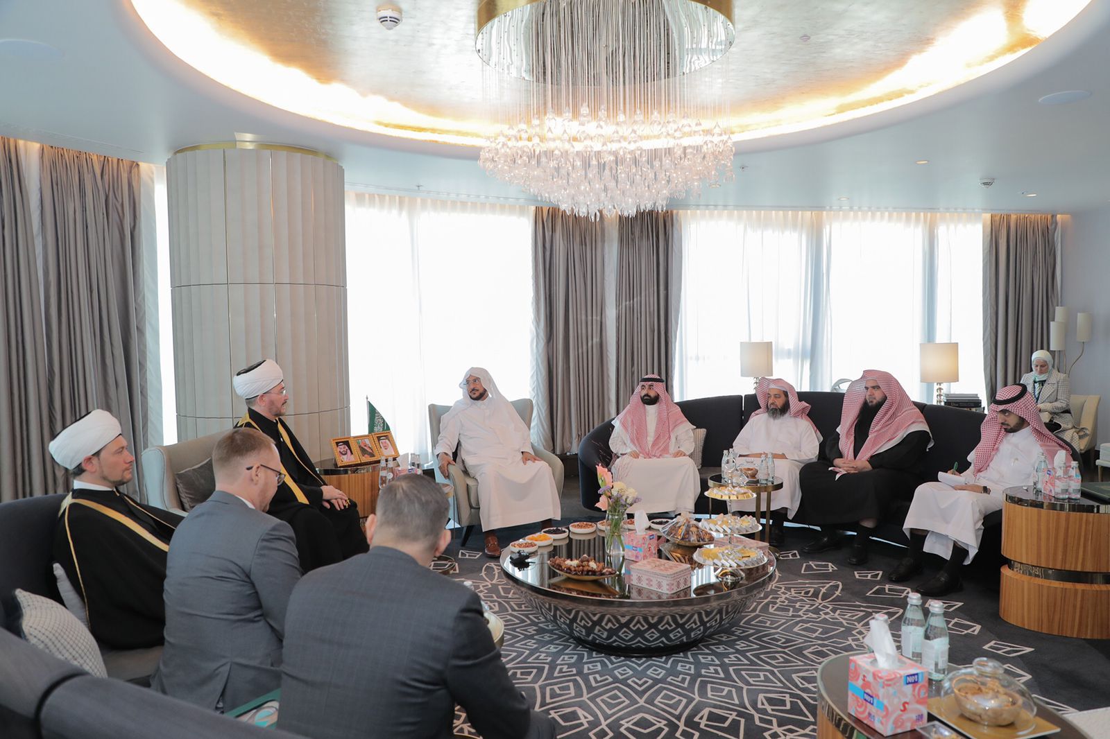 استقبل معالي وزير الشؤون الإسلامية والدعوة والإرشاد الشيخ الدكتور عبداللطيف بن عبدالعزيز آل الشيخ، اليوم في مقر إقامته بالعاصمة الكازخستانية نور سلطان ، رئيس الإدارة الدينية لمسلمي روسيا الاتحادية سماحة المفتي الشيخ راوي عين الدين، ونائبه الدكتور ضمير محي الدين ، وذلك على هامش مؤتمر زعماء الأديان العالمية والتقليدية الذي اختتم جلساته في العاصمة نور سلطان يوم أمس بمشاركة أكثر من 100 وفد من زعماء الديانات العالمية من 60 دولة حول العالم .