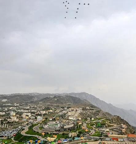 رسمت طائرات القوات الجوية الملكية السعودية لوحة احتفاء باليوم الوطني الـ 92 في سماء منطقة الباحة.
