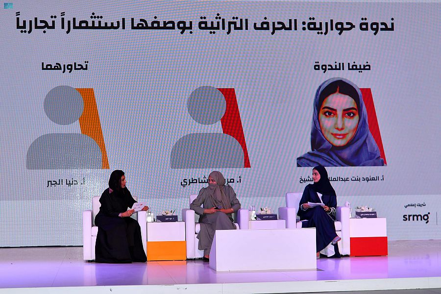 تضمن اليوم التاسع للبرنامج الثقافي لمعرض الرياض الدولي للكتاب 2022 ندوة حوارية بعنوان ” الحرف التراثية بوصفها استثمارًا تجاريًا “، بحضور مروج الشاطري والعنود آل شيخ المتخصصتين في نشاط الحرف التراثية.