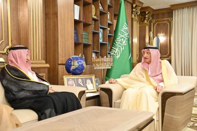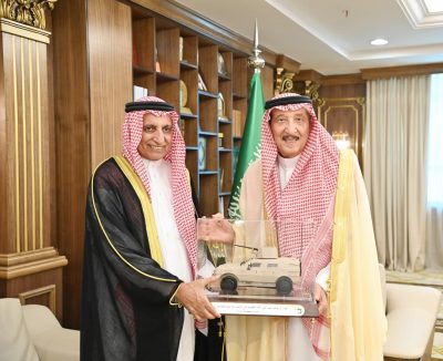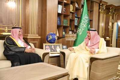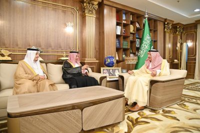 استقبل صاحب السمو الملكي الأمير محمد بن ناصر بن عبدالعزيز أمير منطقة جازان في مكتبه بديوان الإمارة اليوم، معالي رئيس المؤسسة العامة للصناعات العسكرية المهندس محمد بن حمد الماضي، ، يرافقه مدير عام مصنع الملابس والتجهيزات العسكرية الأستاذ سليمان السعيد.