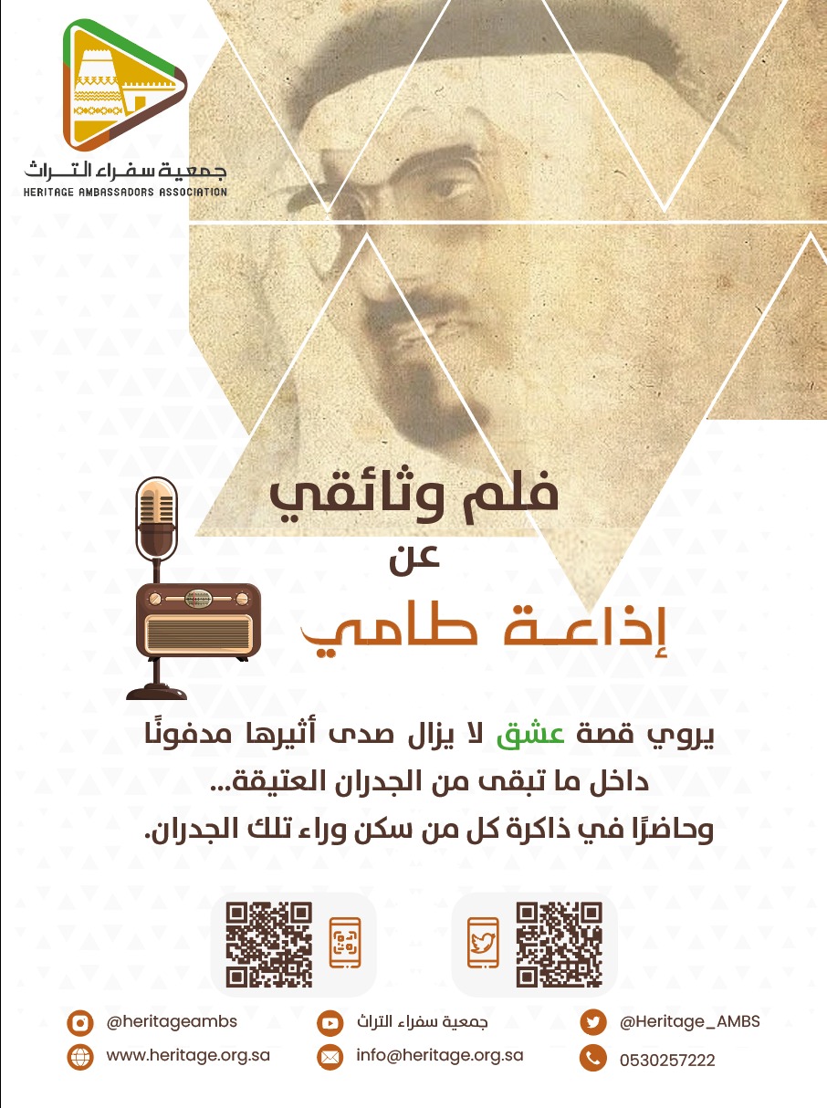 وإيمانًا منا نحن -جمعية سفراء التراث – بأهمية التراث السمعي والبصري قمنا بإنتاج فيلم وثائقي في نسخته الأولى عن إذاعة طامي وهي أول إذاعة أهلية في المنطقة الوسطى بالمملكة العربية السعودية ورخص لها مجلس الوزراء في عهد الملك سعود، وبدأت بثها من العاصمة الرياض عام 1381هـ واستمرت أقل من ثلاث سنوات. وكان أول بث لها عام 1381هـ.