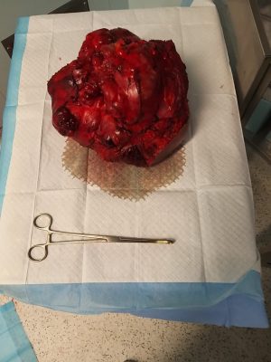 تمكن فريق طبي بمستشفى الملك فهد التخصصي بتبوك , من إجراء عملية جراحية ناجحة في الصدر لاستئصال ورم سرطاني يصل وزنه الى 7 كيلو و200 غرام , لمقيم يبلغ من العمر33 عاما ً, في عملية استغرقت حوالي 5 ساعات , تم خلالها استئصال الورم بالكامل بنجاح ولله الحمد .