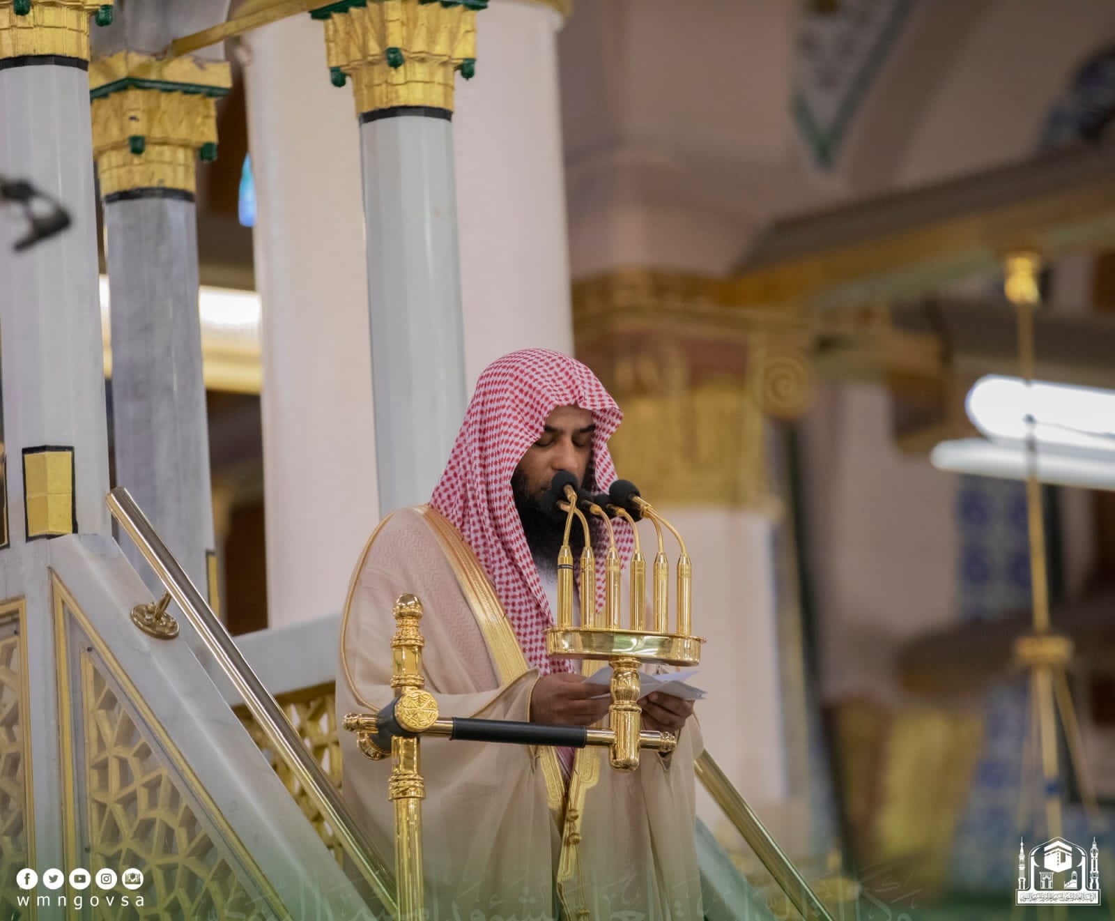 أمّ المسلمين اليوم لصلاة الجمعة في المسجد النبوي الشريف بالمدينة المنورة فضيلة الشيخ صلاح البدير إمام و خطيب المسجد النبوي.