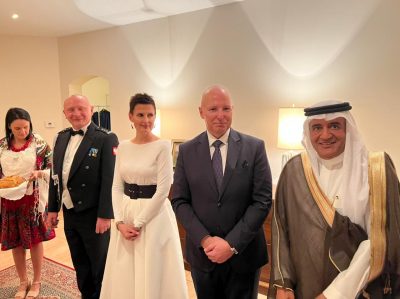 حي السفارات بالرياض وكان بالحضور عدد من السفراء ورجال الاعمال من الجانبين